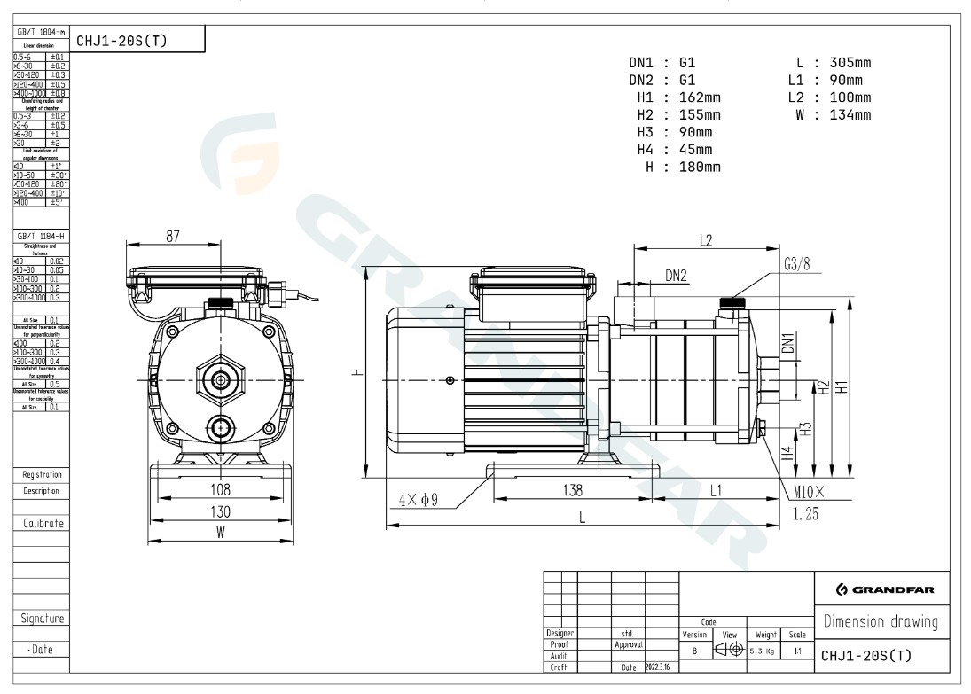 Центробежный насос GRANDFAR CHJ2-20ST